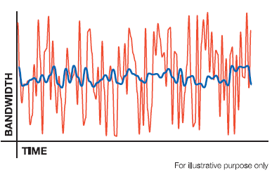 아래의 예시도는 연주음악의 주파수 (청색)과 프로번의 복합 가상 랜덤 알고리즘을 보여줍니다.
